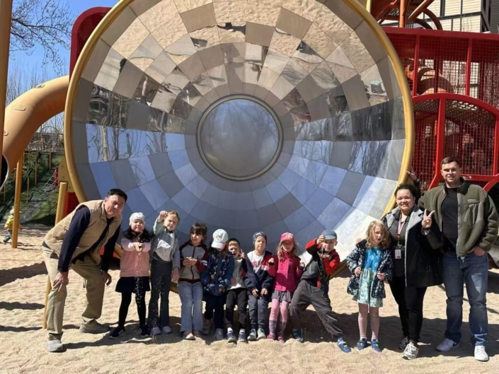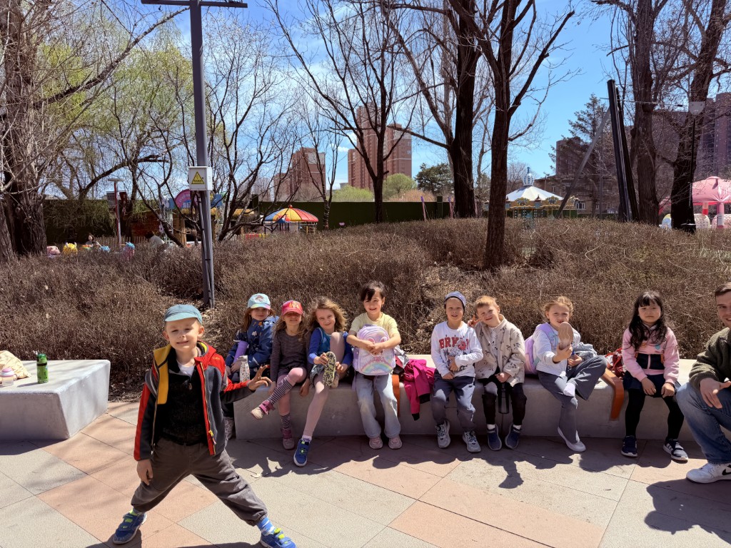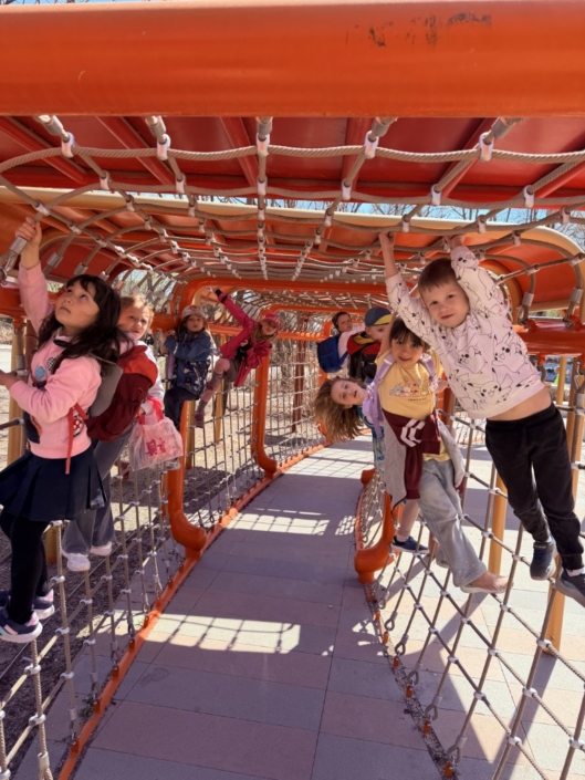 Für die Erzieherinnen und Erzieher sowie für viele Kinder war der Park kein unbekannter Ort, da wir ihn bereits zuvor besucht hatten. Dieses Mal waren jedoch nicht nur Kinder aus dem DISC‑Kindergarten vor Ort – wir trafen dort auch unsere Freunde aus dem GIK‑Kindergarten. Das war eine große Freude! Ein Wiedersehen nach längerer Zeit musste natürlich mit einem gemeinsamen Gruppenfoto festgehalten werden.