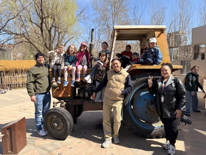 Am 21. April 2026 zeigte sich das Wetter endlich von seiner besten Seite: strahlender Sonnenschein begleitete uns durch den Tag. Nach dem Frühstück packten wir unsere Wasserflaschen und Hüte ein und machten uns anschließend mit dem Bus auf den Weg. Unser Ziel an diesem Tag war der Traktorpark.