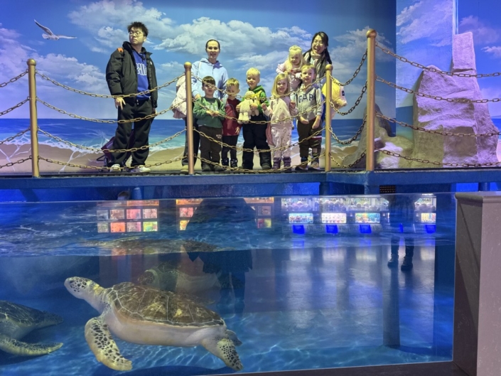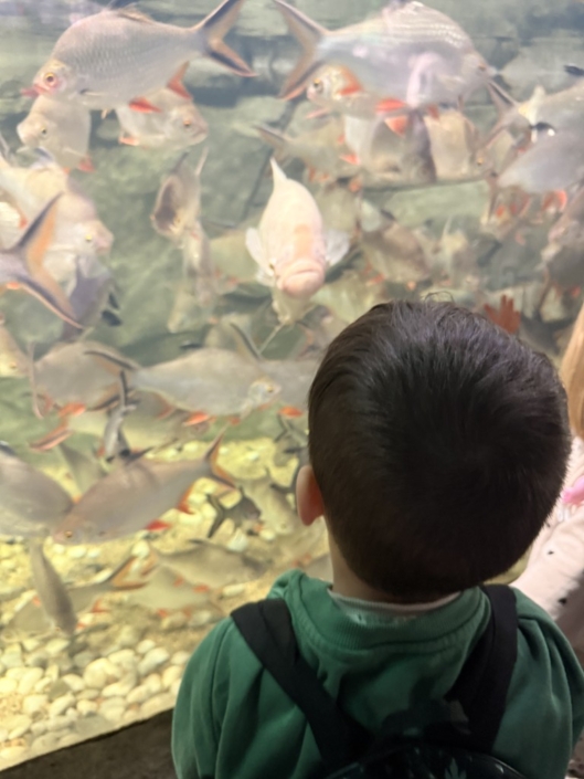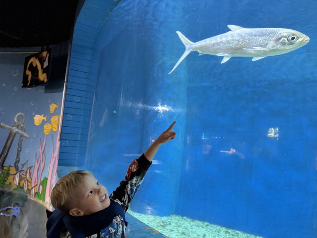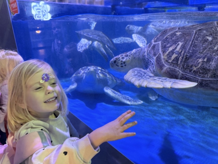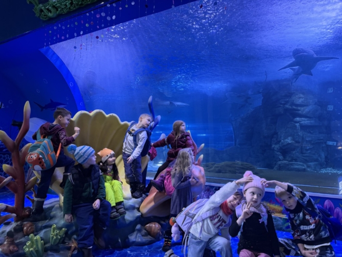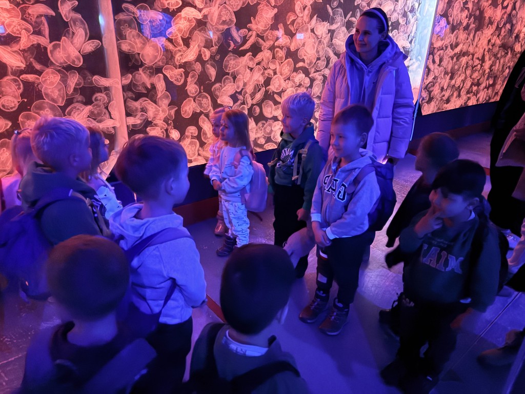 Während unseres Rundgangs konnten wir viele verschiedene Tiere beobachten und dabei einiges über die bunte Unterwasserwelt lernen. Besonders spannend fanden die Kinder die großen Haie, die ruhig durch die Becken glitten. Auch die Meeresschildkröten beeindruckten mit ihrer Größe und ihren langsamen, eleganten Bewegungen. Die Quallen faszinierten durch ihr schimmerndes Aussehen und ihre sanften, fast schwebenden Bewegungen im Wasser.