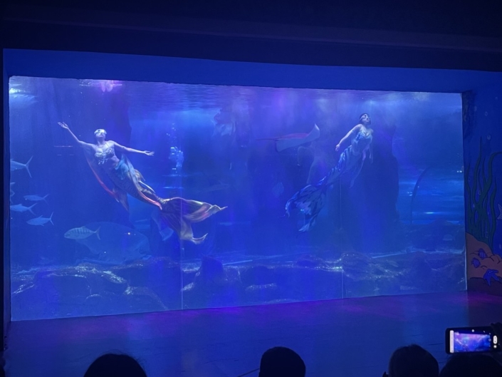 Ein besonderes Highlight des Tages war die Meerjungfrau‑Show. Mit großen Augen bestaunten die Kinder die schwimmende Meerjungfrau, die sich elegant zwischen den Fischen bewegte. Viele Kinder waren begeistert und stellten im Anschluss zahlreiche Fragen.