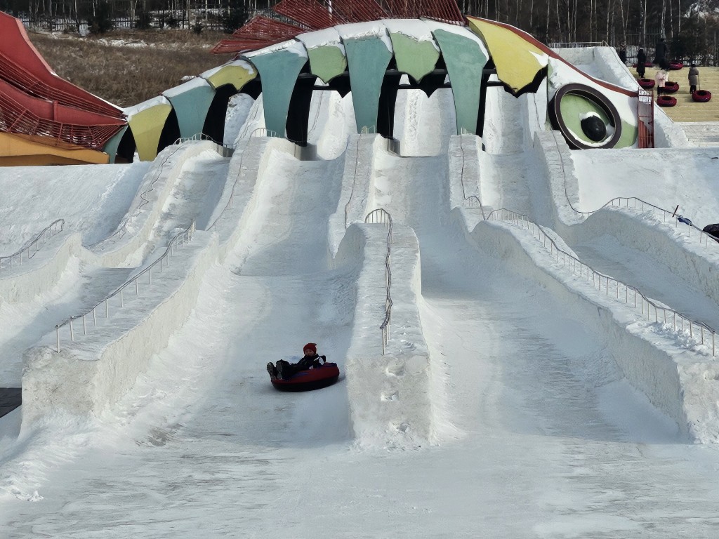 Das Wetter war wundervoll: Angemessen kalt, wenig Wind, blauer Himmel, etwas Sonne. So ließ es sich den ganzen Tag draußen aushalten. Es wurde bestimmt hundert Mal gerutscht. Zuerst auf den großen langen Rutschen, bei denen man sehr lange hochlaufen musste und dann in einem großen Reifen runterrutschte. Einige Rutschen davon waren sehr schnell, bei anderen drehte man sich im Reifen. Dann ging es zu vielen kürzeren Rutschgelegenheiten aus Schnee oder aus Eis. An diesen verbrachten die Kinder die meiste Zeit und wollten gar nicht mehr aufhören.