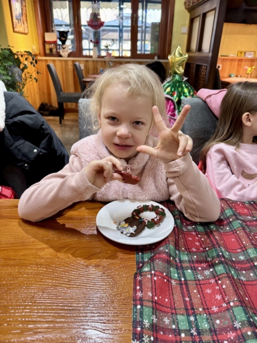 Am 16. Dezember 2025 erlebten die Kinder der GIK einen ganz besonderen Adventsvormittag. Schon beim Betreten der Backstube wurden wir von einem herrlichen Duft nach frisch gebackenen Plätzchen und weihnachtlichen Gewürzen empfangen. Kerzenschein und liebevoll arrangierte Tannenzweige schmückten den Raum und sorgten für eine festliche Atmosphäre, die sofort alle verzauberte.