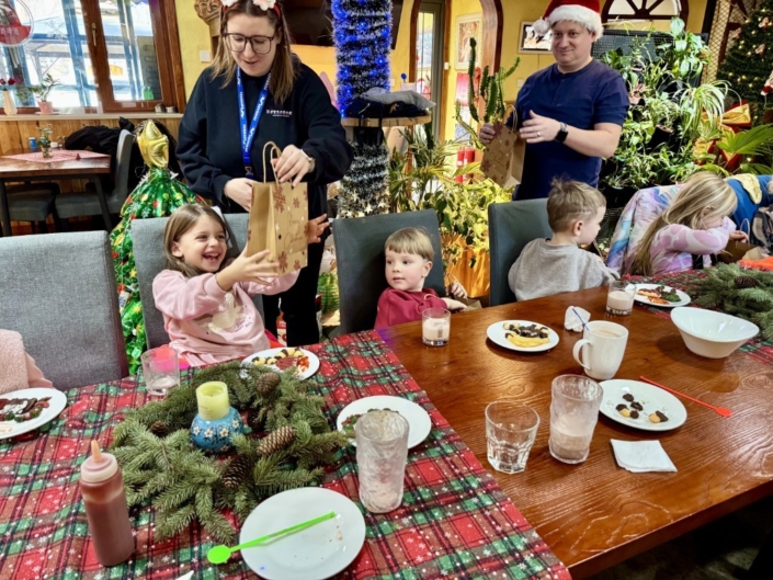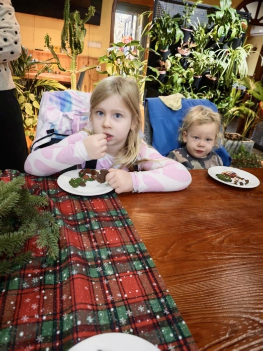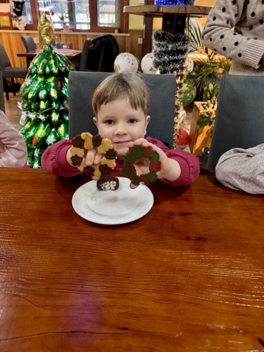 Dort wartete eine liebevolle Überraschung: ein Tisch voller köstlicher Weihnachtsplätzchen, die wir gemeinsam probieren durften. Bei einer Tasse warmem Kakao kam sofort eine gemütliche Adventsstimmung auf – es wurde gelacht, erzählt und die Vorfreude auf Weihnachten war überall spürbar.