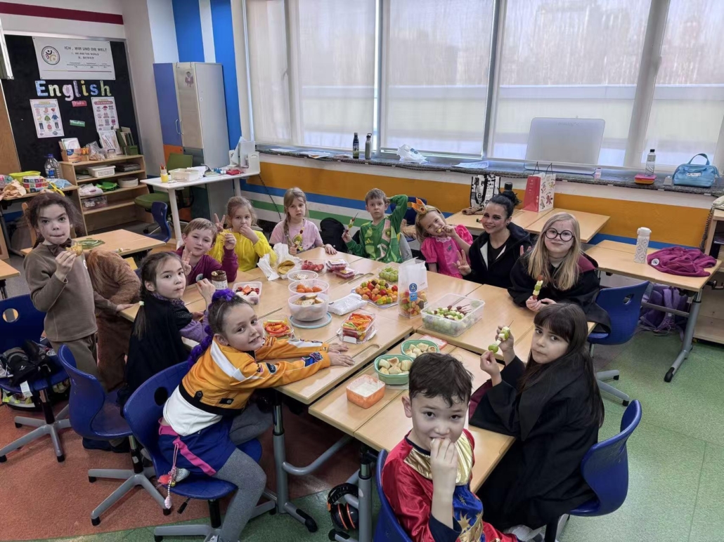 Schon beim Betreten des Schulgebäudes war klar: Heute ist alles anders. Statt Ranzen und Schulbüchern prägten glitzernde Umhänge, mutige Superhelden und fantasievolle Fabelwesen das Bild. Unser diesjähriger Faschingstag startete herrlich entspannt, als sich die Kinder in der zweiten Stunde in ihren Klassengemeinschaften zum gemeinsamen Frühstück zusammen-fanden. In gemütlicher Runde wurde geschlemmt, gelacht und die Zeit genutzt, um die detailreichen Kostüme der anderen ausgiebig zu bewundern.